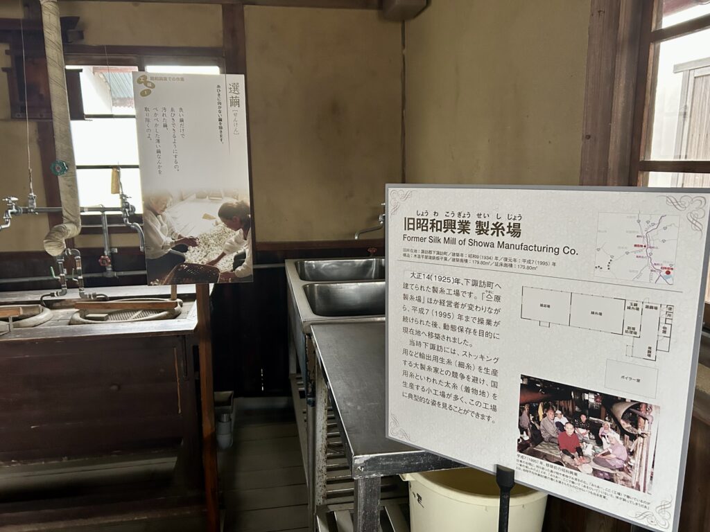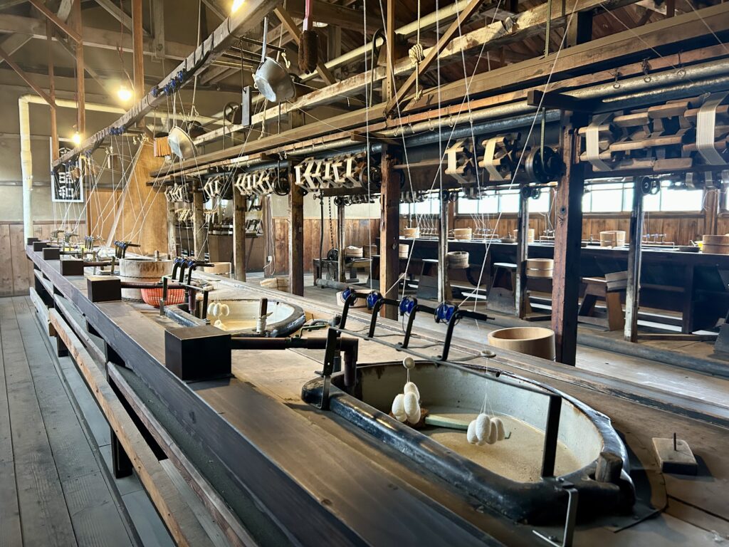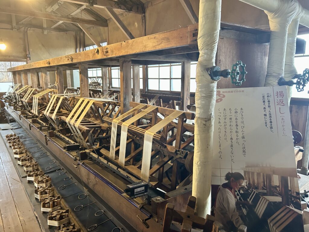 糸を扱うための設備がずらっと並び、当時ここで多くの人が黙々と作業していた様子が自然と浮かびます。