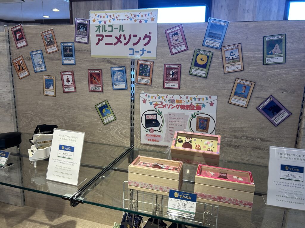 そして、子どもも大満足なのが、アニメソングや有名楽曲をオルゴールの音色で実際に聴けること。