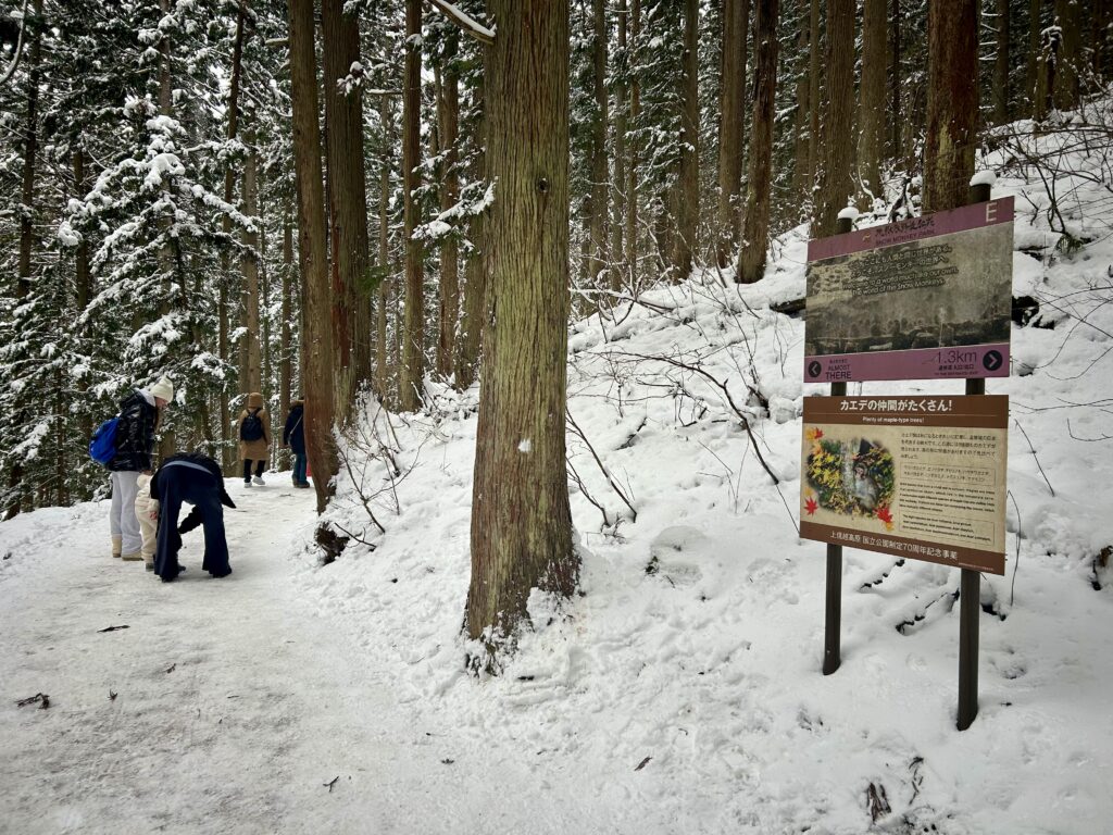 道中は歩くことに集中しすぎず、周囲の雪景色や静かな森の空気に目を向ける余裕も生まれてきます。