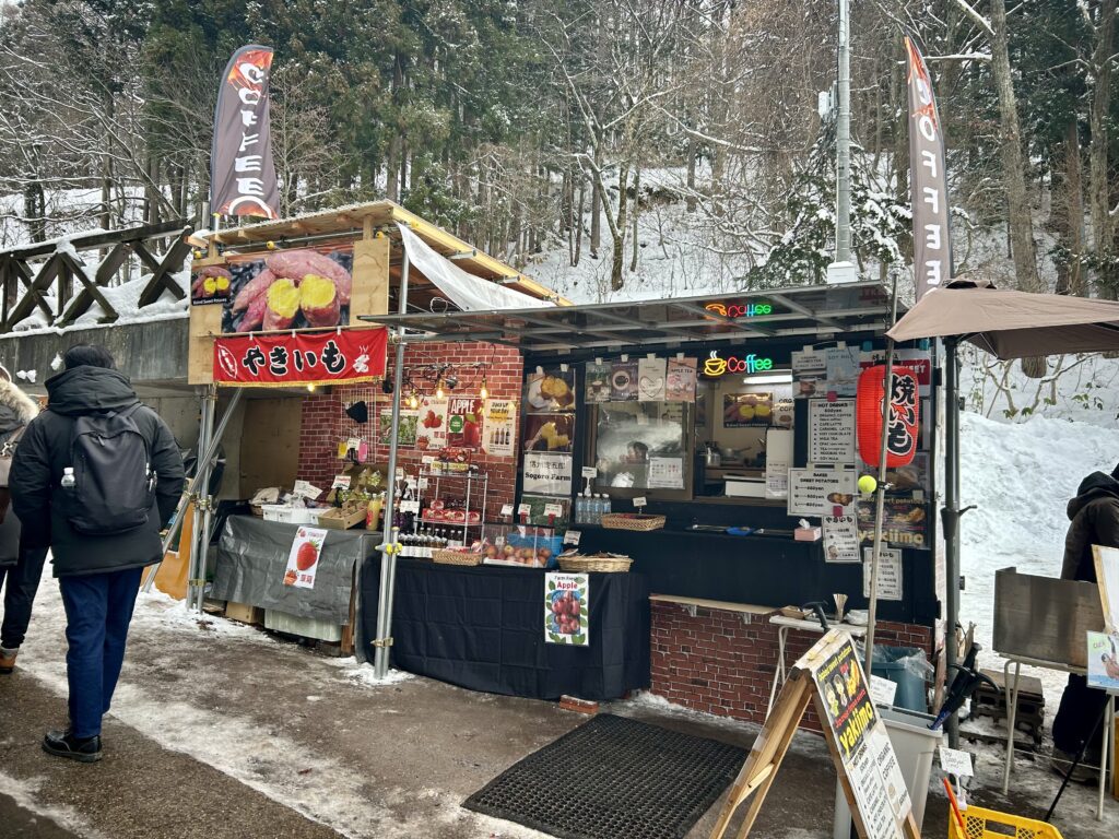 焼き芋やコーヒーの屋台が並び、どこかお祭りのような賑やかな空気。